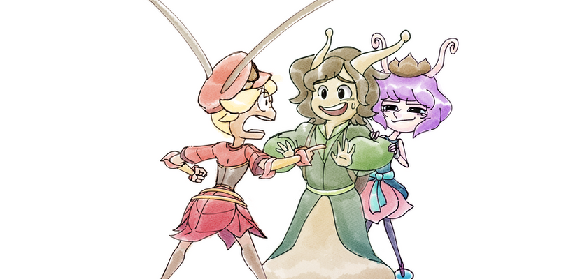 Ali has also designed shirts for bands, and likes to think they have good taste in merchandise from their time designing for/assisting the cutest Japanese store in L.A., "Neko Stop." They're deeply passionate about non-traditional fantasy in animation and video games, absurdist humor and slice of life stories with slight fantasy/sci-fi elements peppered in. They're enthralled by the delicate balance that makes something weird/ugly-cute and has extensive knowledge about bizarre sea creatures.