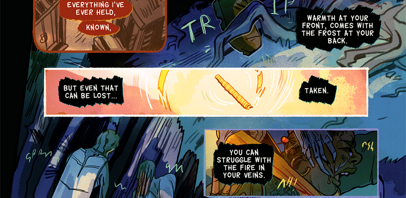 Shan Bennion (they/them) is a queer freelance illustrator and graphic novelist. They love exploring fantasy/sci-fi, monsters, and figuring out just how gay they can make a narrative. Known for vibrant colour and texture, they incorporate dramatic lighting into their pieces and take pride in representing face bodies and aesthetics of all kinds in their art. Their work varies, enjoying a bit of everything from colourist to graphic novelist to being the Art Lead for the Confluence TTRPG. Their art has also been featured in the highly praised Alley-man’s Tarot, The Literary Tarot and The Adventure Zone’s Crystal Kingdom.